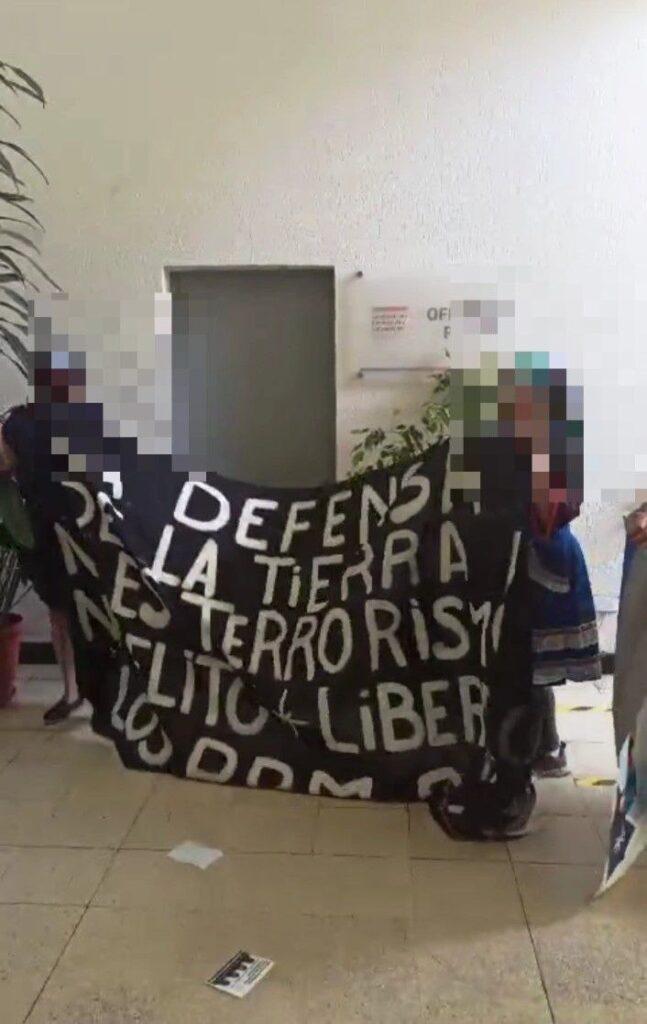 Los familiares ingresaron cerca de las 12 horas del martes a la Delegación Presidencial con lienzos y con la intención de funar y responsabilizar a la representante del gobierno en la región por cualquier desenlace fatal que puedan tener los comuneros que hoy cumplen 65 días en huelga de hambre.